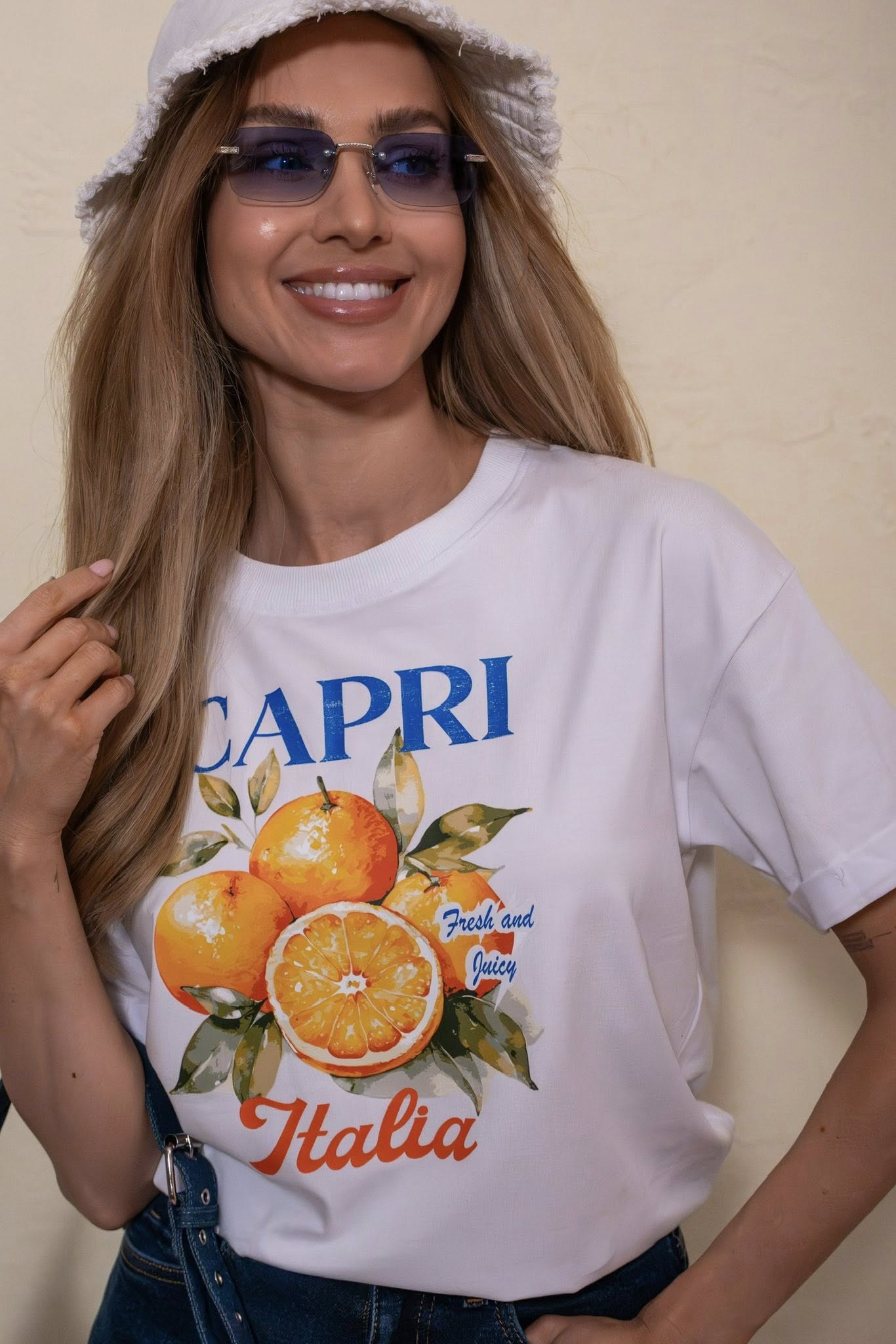 Bavlnené tričko je pohodlný a štýlový kúsok s výraznou potlačou, ktorá dodá outfitu svieži a šťavnatý vzhľad. Zadná strana trička je čisto biela