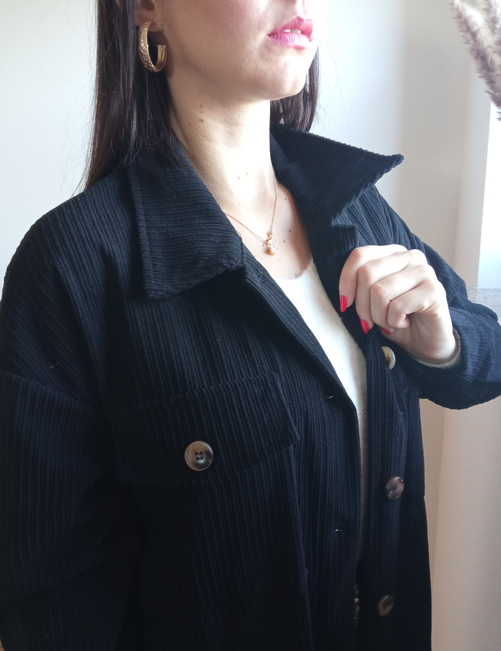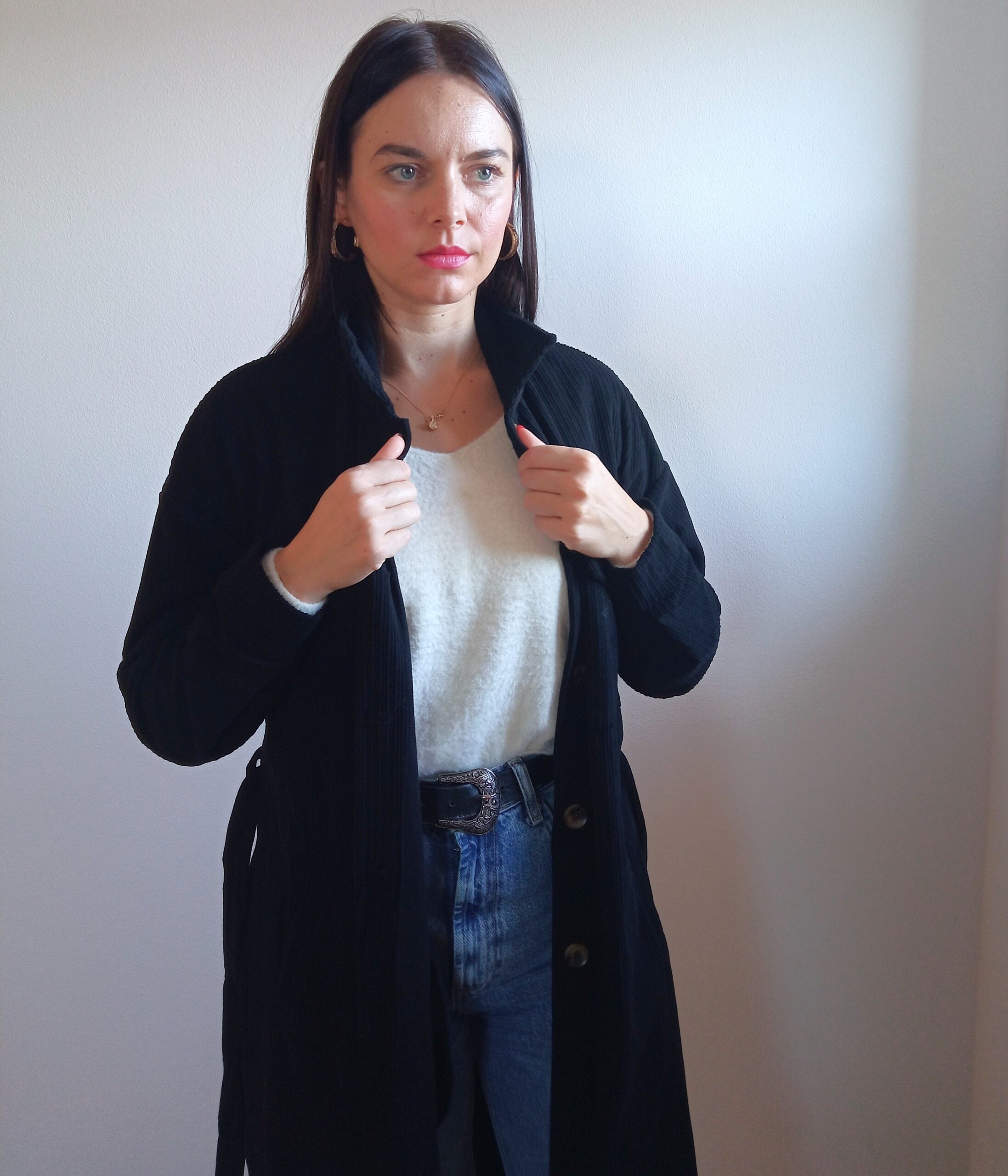 Menčestrový kabát čierny