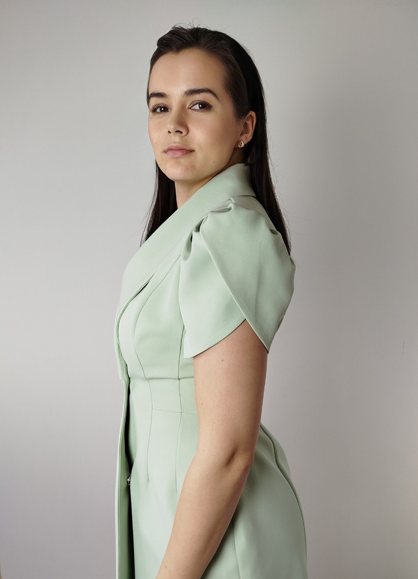 Modelka: Meria 165 cm. Miery 86-62-90. Nosí veľkosť XS/S. Na sebe má najmenšiu ponúkanú veľkosť.